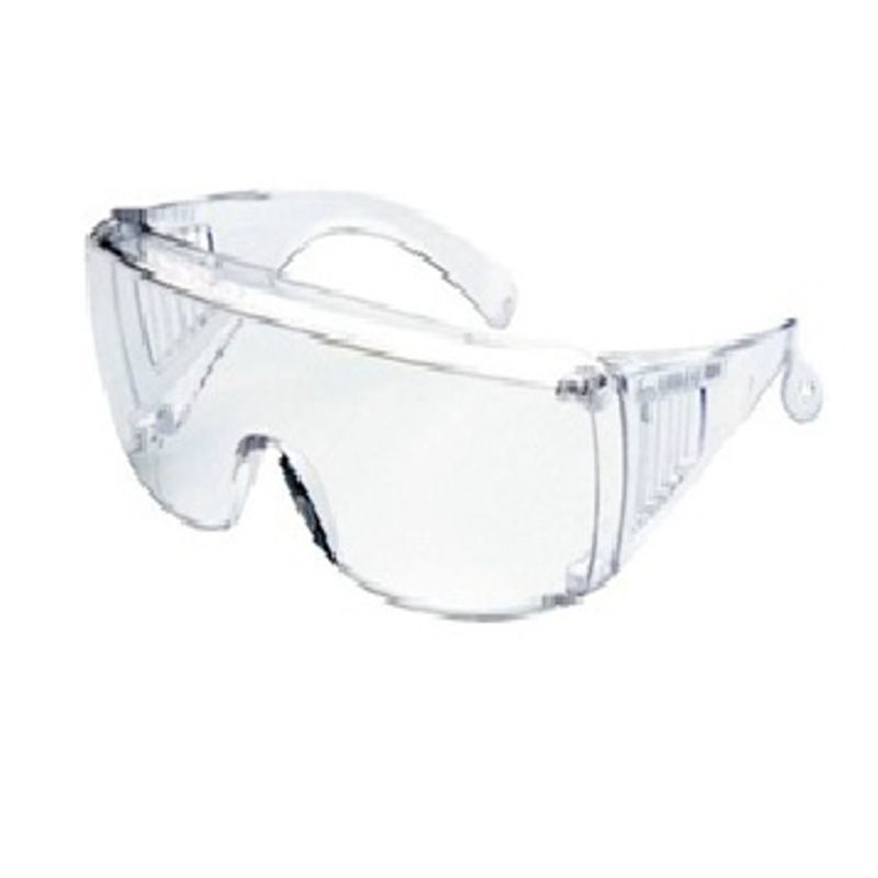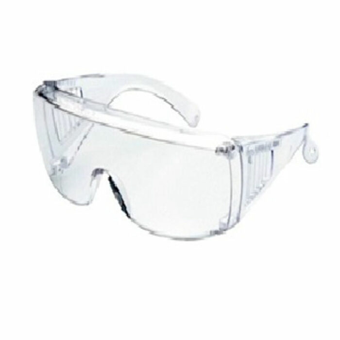 Lunettes avec branches larges assurant une protection latérale. Face et branches en polycarbonate transparent.