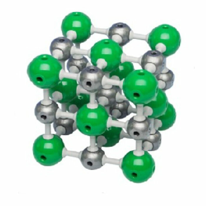 Le modèle cristallin de chlorure de sodium est composé de 36 atomes de chlore et sodium de même taille.